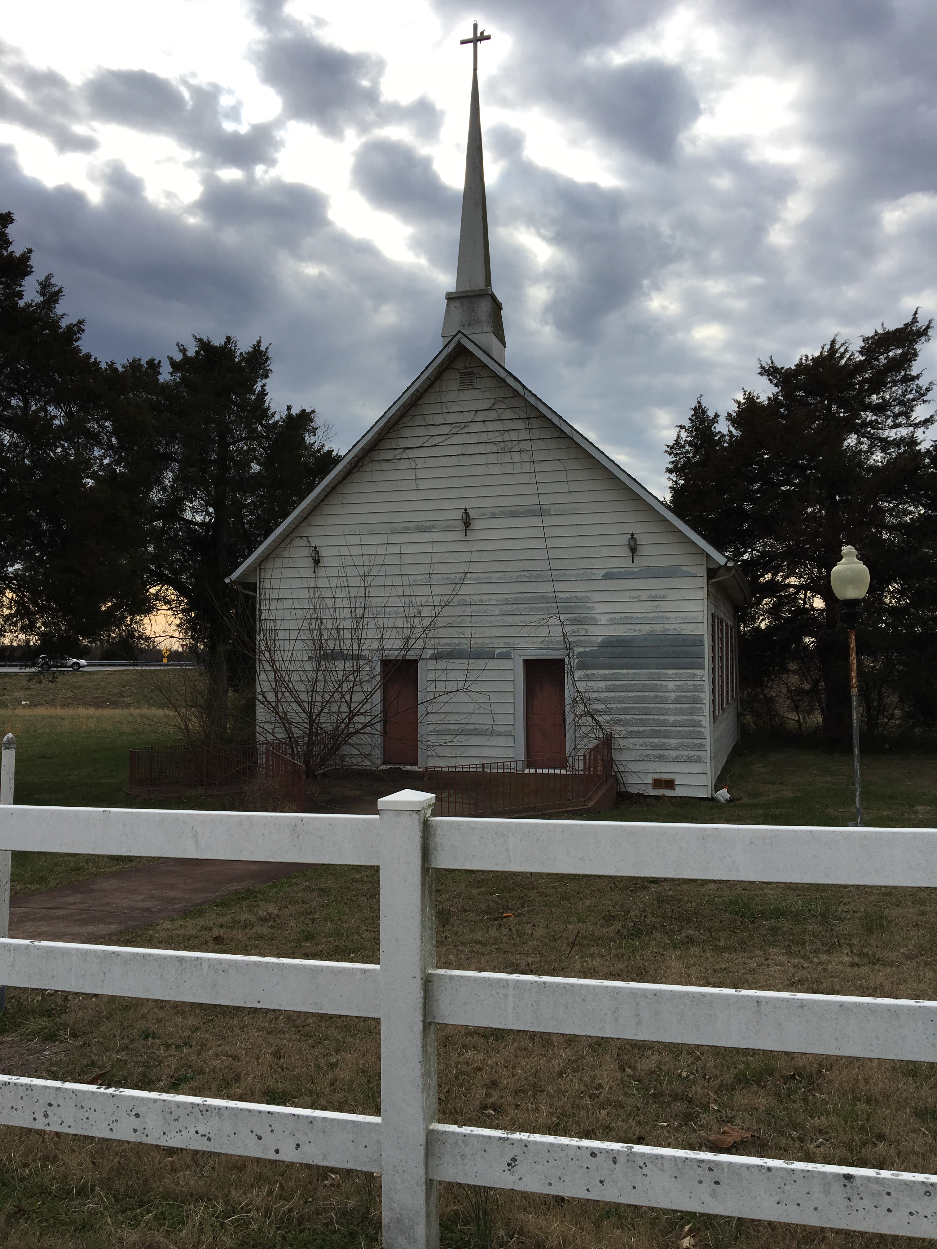 On our way back home, my fiancé was riding along with me and we decided to make a stop at Missouri’s famous Ozarkland Country Store. There are several billboards advertising it, as soon as I saw one, I took the nearest exit to find the store. Unfortunately, using my internal GPS system (circa 1992), I found myself on a dirt road with no entrance back onto the highway. I didn’t know where to go from there except to follow the old dirt road, and hope for the best. As I kept driving, looking for a sign of civilization and an opening back on the main road, something caught my eye. We had just passed a curve in the road, when an old run down still standing church appeared in the middle of a field.