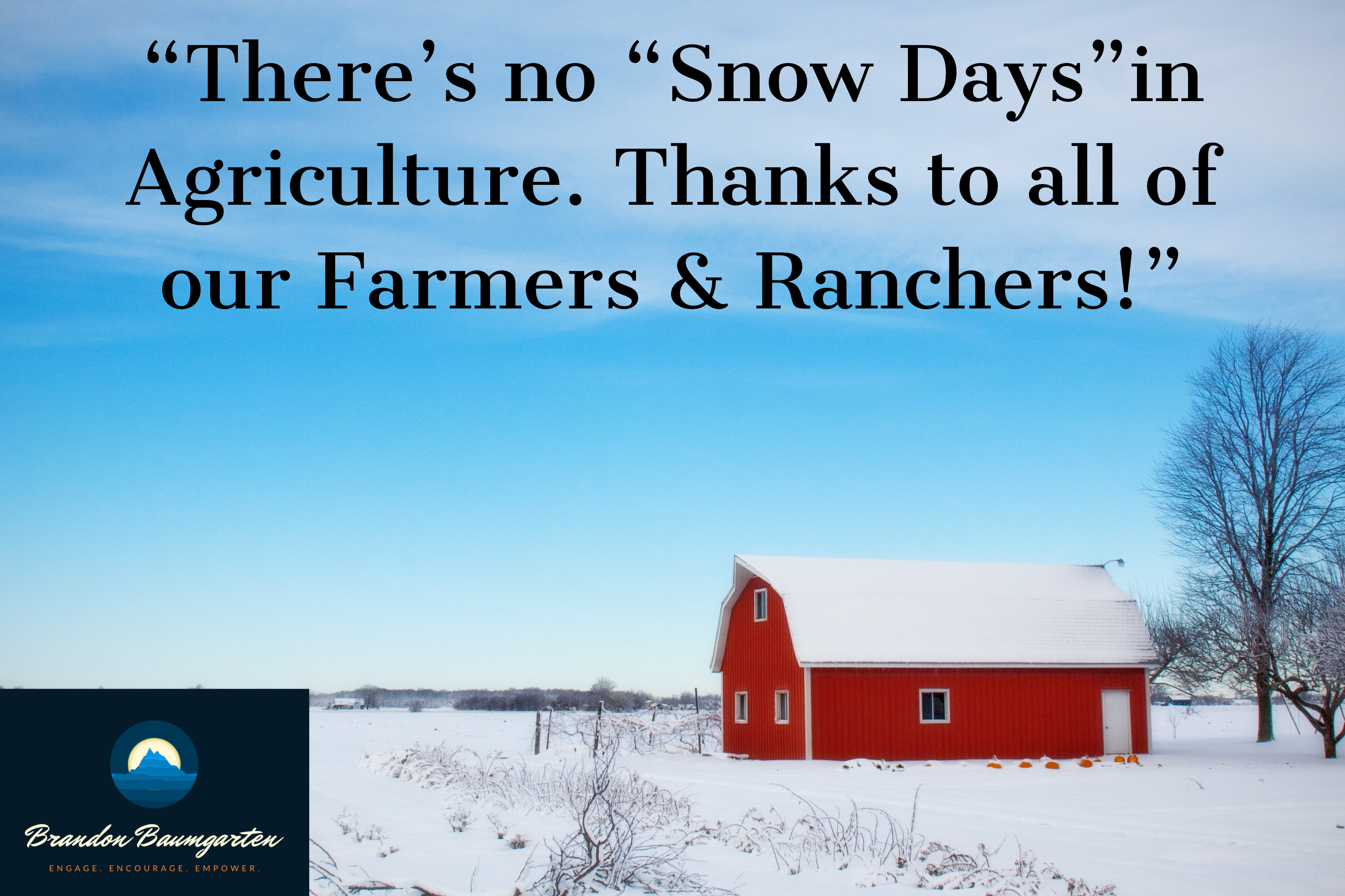 As I heard this conversation, I was impressed with the attitude of the high school student, but also reminded of what our producers go through. Such commitment to their job and to their industry. No one likes the thought of feeding their livestock in these freezing temperatures, but there’s no such thing as a “Snow Day” in agriculture. Therefore, the work must go on.